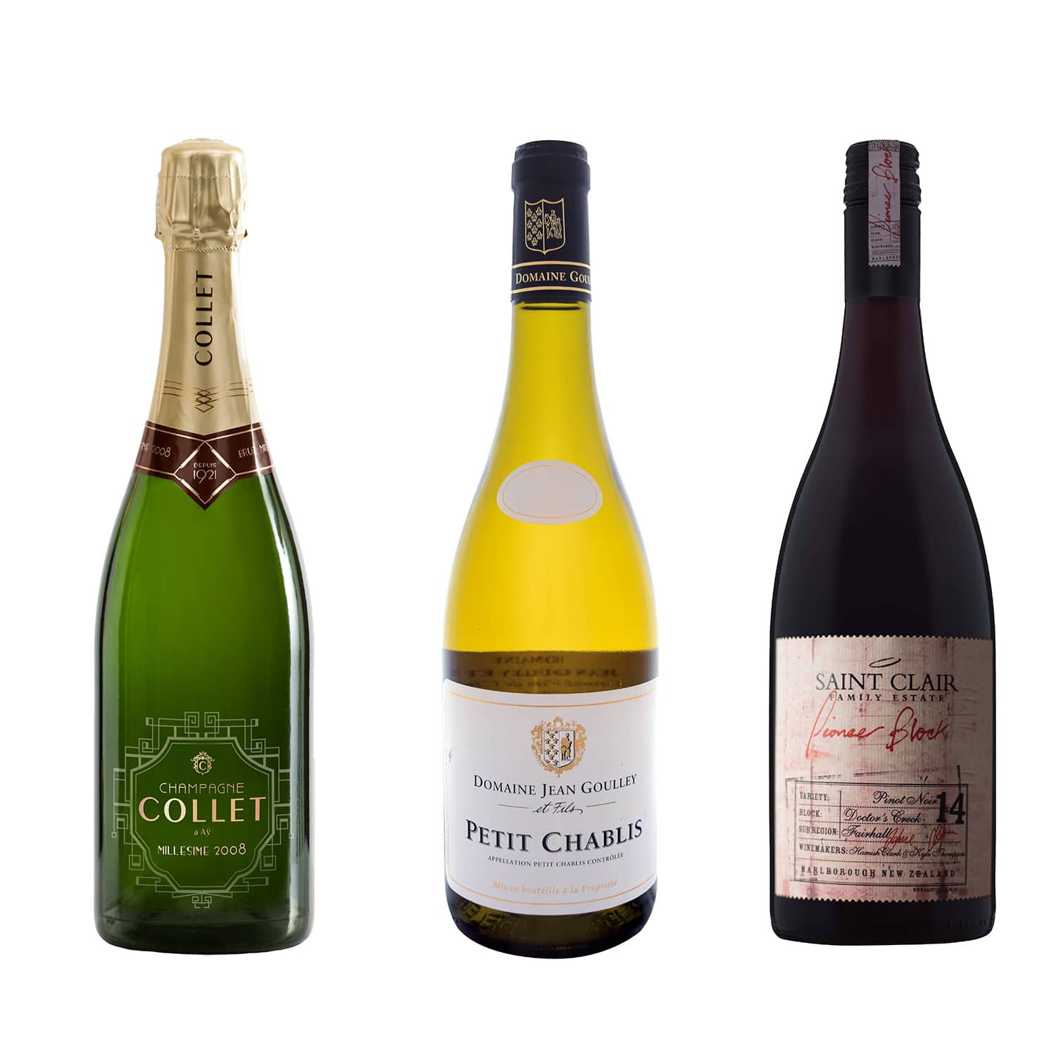Our Red-Carpet Package is for those who want to give their guests the absolute best. Starting with Champagne Collet, your guests will then move onto a beautiful Petit Chablis a Pinot Noir to die for!